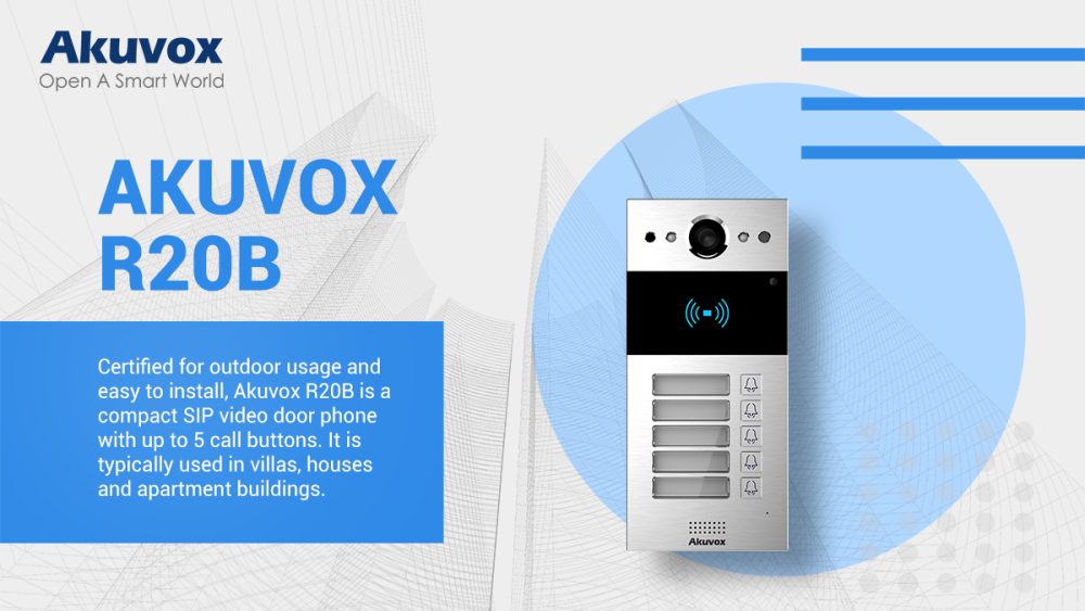 Akuvox پس از مدتها آیفون تصویری هوشمند تحت نام R۲۰B عرضه به بازار کرد و این مشکل را حل کرد. حال بوسیله R۲۰B میتوانیم ساختمانهایی با محدودیت واحد تا ۵ واحد را هوشمند کنیم.